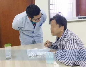 易行(左)与患者聊天